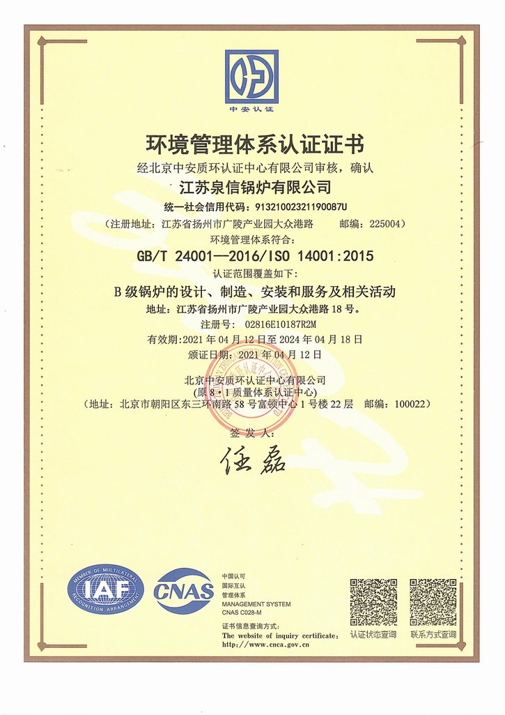 環境管理體系認證證書