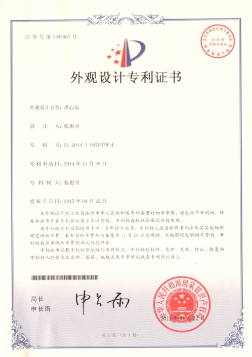 外觀設計專利證書