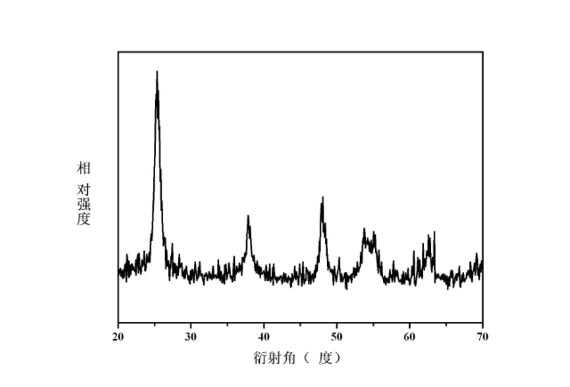 (圖1為所制備的二氧化鈦的XRD圖譜,圖中圖譜對應于銳鈦礦二氧化鈦(JCPDS No. 71-1167)