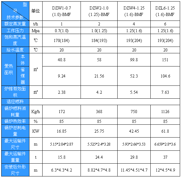 DZW型系列鍋爐是我公司設計的鍋爐,該系列為單鍋筒縱置式往復爐排鍋爐,生物質顆粒(壓塊)經上料機輸送(提升)到爐前料倉落入螺旋給料機構推送落到爐排上,經爐前料倉落入螺旋給料機構推送落到爐排上,經護排往復推動進入爐膛燃燒。產品為臥室三回程水火管組合式鍋爐,在鍋筒內布置有煙管,爐膛左右兩側設有水冷壁管,高溫煙氣經過后部煙箱進入第一回程后到達前煙箱,再由前煙箱折回第二回程煙管流入后煙箱、省煤器、除塵器,然后由引風機引抽引通過煙囪排向大氣。該系列往復爐排鍋爐具有以下特點:1.熱效率高,消因除塵效果好,噪音低;2.鍋爐整體出廠,安裝時間短,基建投資少;3.配套齊全,機械化及自動控制程序高,操作方便,安全可靠,勞動強度低;4.主燃區采用大冷卻比高硅耐熱鑄鐵爐排片,使用壽命長,工作可靠。