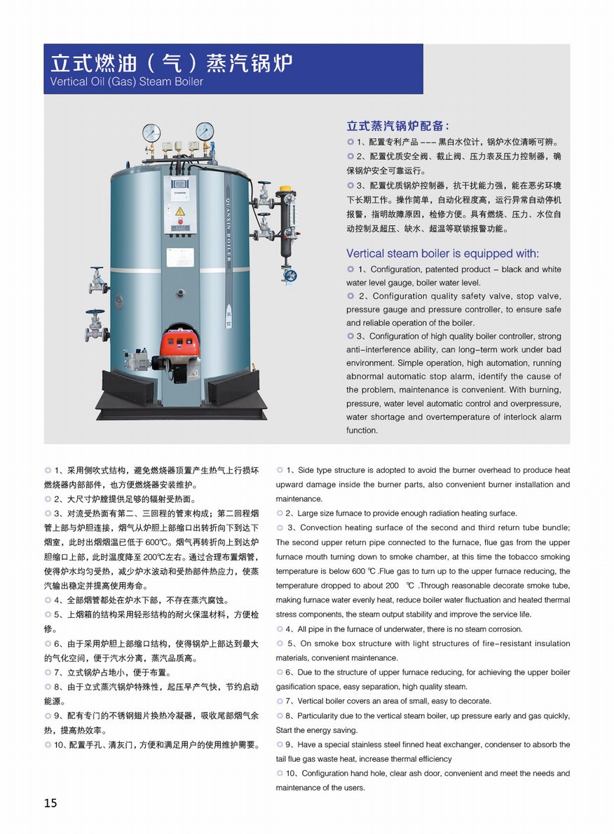 立式燃油(氣)蒸汽鍋爐特點