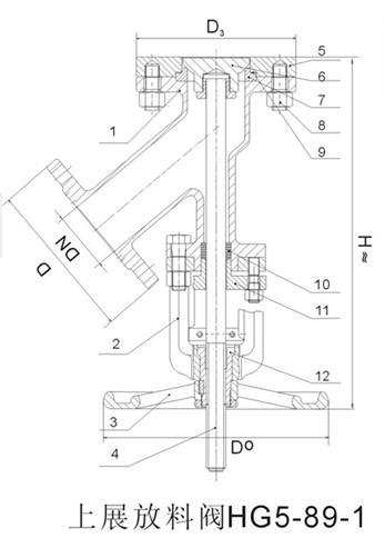 上展式放料閥主要由1.閥體, 2.閥瓣, 3.密封圈, 4.閥桿, 5.支架, 6.閥壓蓋, 7.手輪, 8.法蘭, 9.螺母, 10.定位螺釘等零件組成詳見下圖手輪順轉, 閥門關閉,甘共苦閥桿向上移動, 此閥為上展式放料閥。手輪順轉, 閥門關閉, 閥桿向下轉動, 此閥為下展閥