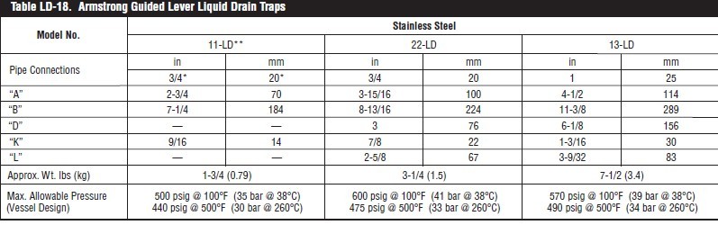 產品名稱:不銹鋼立式排液閥 產品型號:11-LD、22-LD、13-LD 產品品牌:美國Armstrong阿姆斯壯 最大排量4,309kg/hr