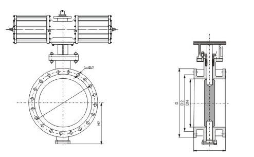 采用新型系列GT型氣動(dòng)執(zhí)行器,有雙作用式和單作用式(彈簧復(fù)位),齒輪傳動(dòng),安全可靠;大口徑閥門(mén)采用系列AW型氣動(dòng)執(zhí)行器拔叉式傳動(dòng),結(jié)構(gòu)合理,輸出扭矩大,有雙作用式和單作用式。