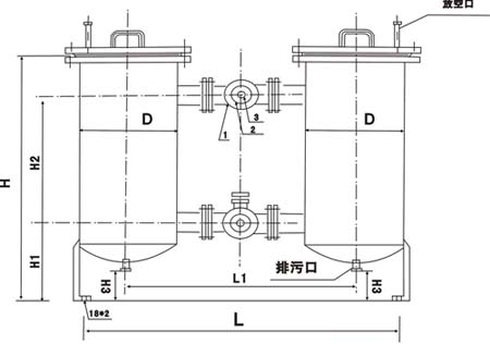 雙聯(lián)切換式過濾器,采用兩個三通球閥,將兩個單筒過濾器組裝在一個機座上,清洗過濾器時不必停車,保證其連續(xù)工作。