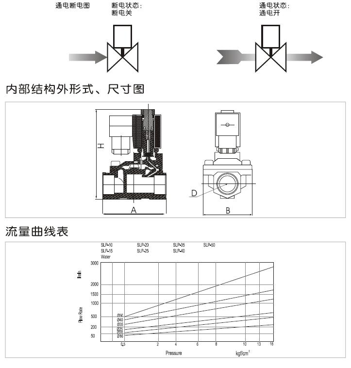 二位二通常閉型電磁閥,斷電關閉,通電打開;產品為系列化生產,體積小,流量大,適用范圍廣