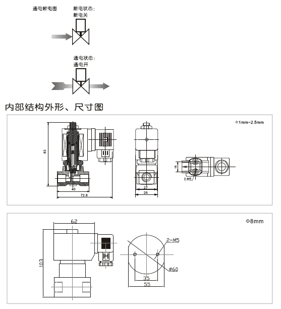 安裝:按閥上所標(biāo)流向箭頭,線圈向上,閥體水平安裝