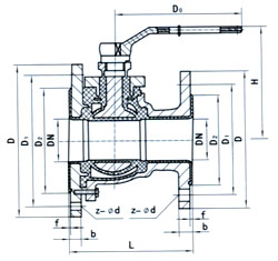 | 襯氟放料球閥、L值為企業標準,左法蘭比右法蘭大一檔,D1與反應釜連接,分子為右法蘭尺寸,分母為左法蘭JB78尺寸,配反應釜50L-5000L。 |