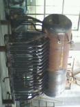 3、立式燃煤蒸汽鍋爐,主要由鍋殼封頭、爐膽、爐膽頂、下封圈、沖天管及橫水管組成,燃燒室布置在爐膽內,燃料在固定爐排上燃燒,自然通風,煙氣在爐膽內橫向沖刷橫水管,經沖天管、煙囪排入大氣。