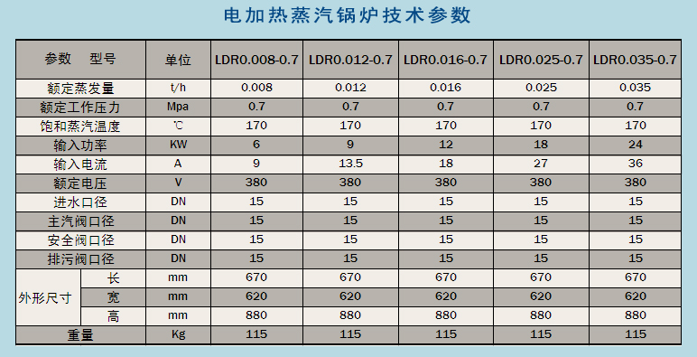 規格 型號額定電功率(KW)6,9,12,18,24額定蒸發量(Kg/h)