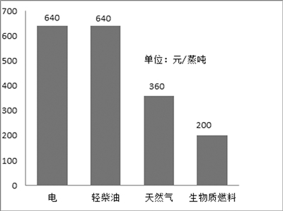 從價格成本來看,輕柴油的價格在每蒸噸640元左右,由于各地電價的差異,估算下來的用電成本和輕柴油的價格相當(dāng);天然氣的價格為每蒸噸360元。由于受到收購、破碎、烘干、成型、運輸?shù)瘸杀疽蛩氐挠绊?,生物質(zhì)燃料價格目前在每蒸噸200元左右。