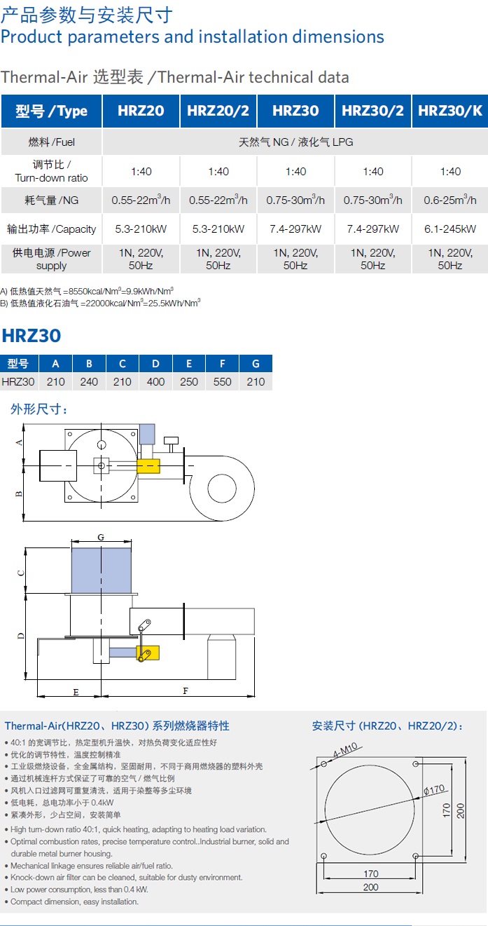 Thermal-AIR(Z20/Z30)系列熱風燃燒器特性: