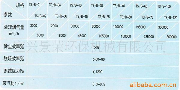 經過XD, XTD, XZ型多管式旋風除塵器凈化后的煙氣,經上部彎管進入脫硫裝置,被旋轉霧化的吸收液引射,接觸混合,煙氣中的SO2與微細粉塵在傳質過程中被吸收液脫除,排入循壞池,再次凈化后的氣體經高效脫水后,從下部排出。